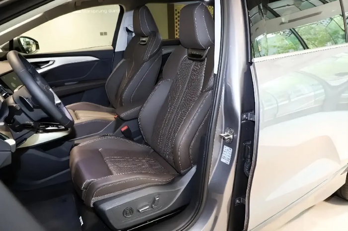 进入上汽奥迪Q5 e-tron车内,首先会感受到大尺寸带来的宽绰空间。作为一辆豪华中大型纯电SUV,同时也是奥迪全球首款“Roadjet 陆地专机”车型,上汽奥迪Q5 e-tron拥有超4.8米的车长,支持6/7座布局可选,乘坐体验很好,充分满足当下4-5人小家庭的出行要求。再加上nappa真皮包裹的电动座椅,支持前排十四向电动调节和通风、加热等功能。在主副驾驶位上还有腿托调节功能,保证我们在长时间乘坐时也能避免腿部不适。