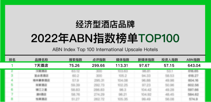 7天酒店在2022年也收获满满,获得2022龙雀奖之最具投资价值酒店品牌奖、ABN指数经济型酒店2021-2022年度影响力品牌TOP 10大奖等10余项行业奖项,同时入选《Hotels》杂志全球品牌排名前30名,并在中国酒店业权威门户空间秘探联合亚洲旅宿大数据研究院(ABNData)发布的经济型酒店品牌2022年ABN指数榜单TOP100上荣获经济型酒店排行第一,全面领跑经济型酒店赛道。