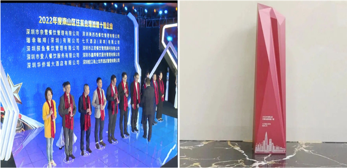 7天酒店荣获2022年度深圳市南山区住餐业增加值十强