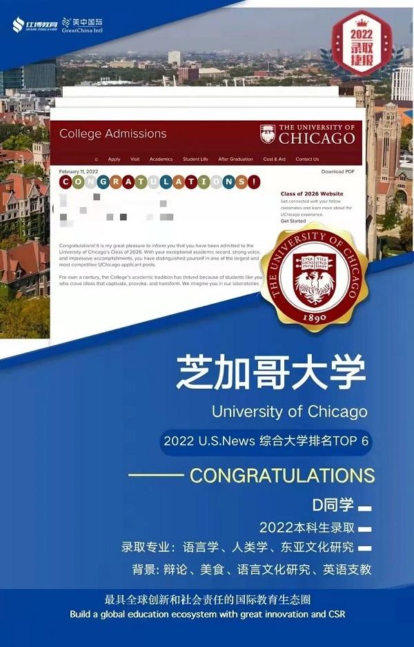 9万美金/年全奖!美中国际仕博学子再斩芝加哥大学录取!