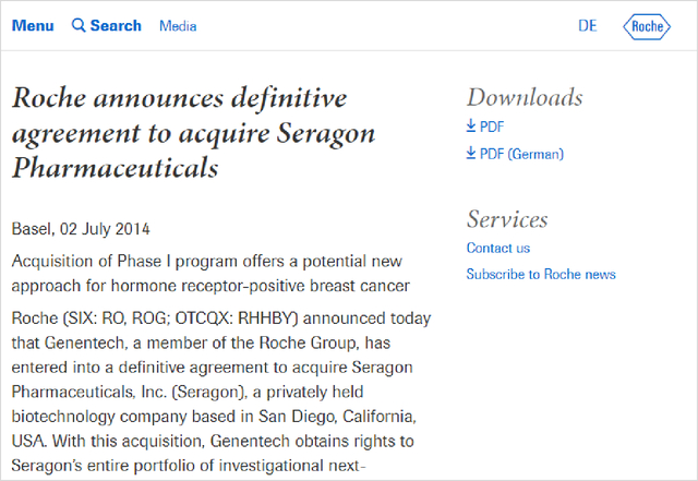 此外,制药巨头还有并购这条捷径可走。例如,赛诺根制药被罗氏收购前的上一产品,前列腺癌新药ARN-509(阿帕他胺/Erleada)便在2013年以10亿美元出售给强生(Johnson & Johnson),并最终成功上市。