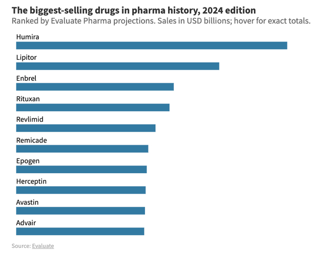 被誉为“世界药王”的艾伯维旗下的修美乐(Humira),在2012-2019年期间一直占据世界最畅销药品年度排行榜的第1名,仅在2019年全球销售额就接近200亿美元。虽然近年来原研药平均研发成本不断走高,但业界普遍的统计都认为,这个数字集中在10-20亿美元之间。由此可见,原研药研发虽不易,但成功后的回报更能打动这些制药巨头。