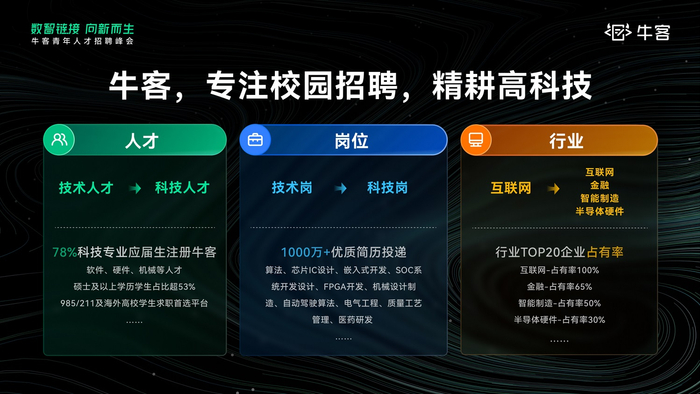 现在,牛客还在继续扩延边界,做深做精高科技校园招聘。