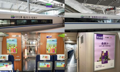 中禾宝桑旗下品牌产品还和多部综艺、电影、电视剧和音乐节等达成了线上线下联动合作;携手分众、永达、雅仕维等上刊电梯、高铁、地铁等线下户外媒体,持续曝光品牌和产品。2022年国庆期间,中禾宝桑携手永达传媒打造中禾宝桑品牌专列,深度辐射所有出发及到达的潜在消费群体,植然乐&宝桑园两个品牌总冠名十余辆列车全媒体,覆盖华中、华东、华南、华北、东北区域,途径大连、上海、武汉、杭州、广州、深圳等核心城市,在契合需求传递品牌价值的基础上,还实现了品牌的高频、浸透式传播,传承中国千年桑蚕文化。
