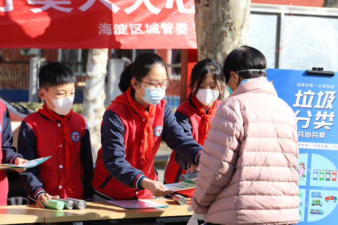 马连洼街道菊园小区“:“小手拉大手”,学生来助力