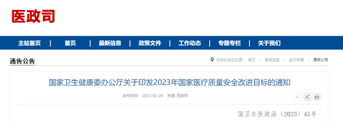 2月28日,国家卫健委医政司发布2023年《国家卫生健康委办公厅关于印发2023年国家医疗质量安全改进目标的通知》,通知明确提出“感染科要提高呼吸道病原体核酸检测覆盖率和呼吸道感染性疾病核酸检测百分比”以及“医院感染控制专业应提高住院患者抗菌药物治疗前病原学送检率”等具体要求。