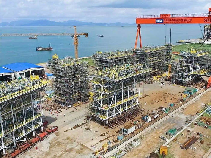 公司在海上工程装备制造业成绩斐然,具备行业领先的建造能力,承建了大量国内、国际大型项目。