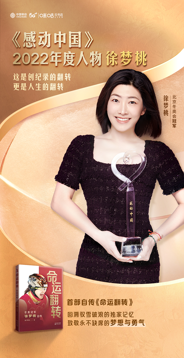 赛后,她更是步履不停挑战自己,跨界不止,全面开花。发行单曲《我是第一》,跨界唱跳登上《乘风破浪的姐姐》舞台,并在兔年春晚为全国观众惊喜献唱;在2023开年,徐梦桃终于圆了自己的出书梦,由咪咕云书店与沈阳出版社联合出版了个人首部自传《命运翻转》,深情讲述三十载追梦生涯,揭秘每一枚奖牌背后的独家记忆。