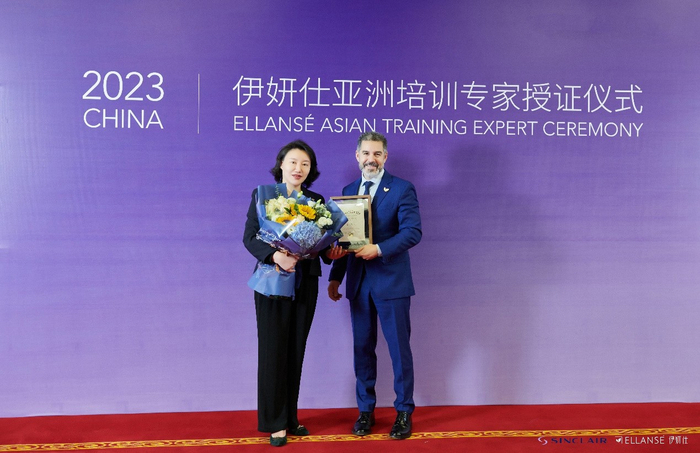 *欣可丽全球CEO——Miguel Pardos给陈瑞红院长颁发的2023年度Ellansé伊妍仕「亚洲培训专家」称号