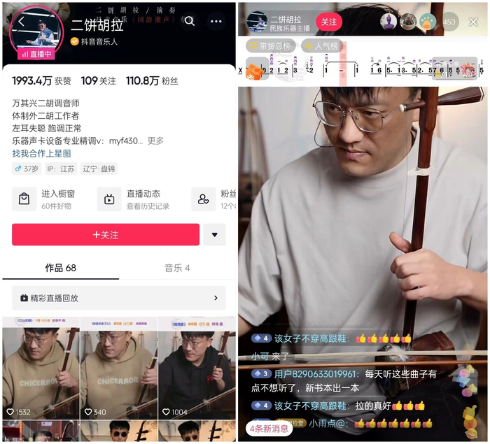 演奏家花式拉二胡获百万粉丝关注,直播打赏成民乐演出新门票