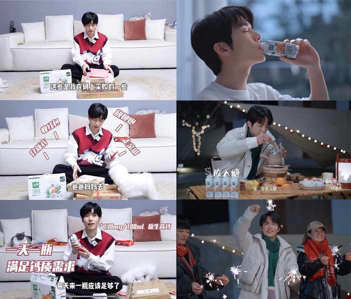 张新成用极具亲和力的讲述,跟大家分享新年TO DO LIST、年味回忆、家乡零食,还跳起了玩具兔年“扭扭舞”,在他的沉浸式的陪伴下,年末氛围感呼之欲出。金典自然出现在“送礼”“煮奶茶”等新年场景里,成为艺人新春情感表达的载体,星粉观看时更容易转化成品牌粉丝,将“有机”“健康”“亲情”等关键词与品牌形象绑定。