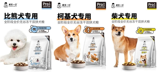 而且在产品研发方面,除了诚实一口N33之外,诚实一口还针对基于小型犬、中大型犬不同生活习性、生理特征专研营养,特别推出了诚实一口P38、诚实一口Pro系列品种犬粮等高品质产品。
