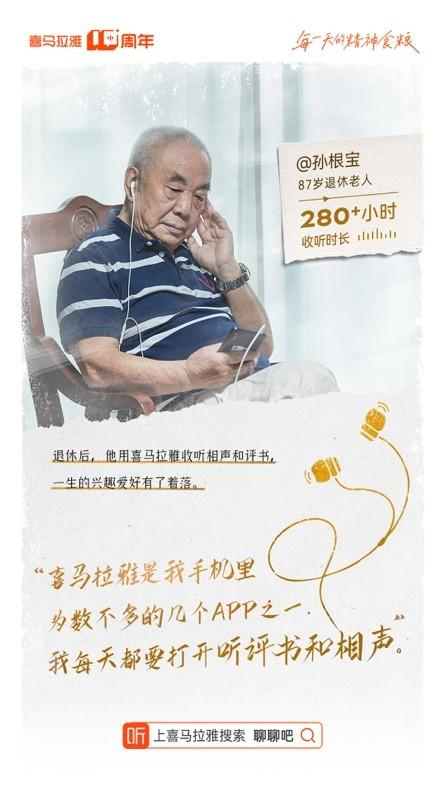 发现了这个好东西之后,孙根宝带动了大院里的老人都用喜马拉雅来听音频了。声音让老人的退休生活增添了更多精彩、乐趣和滋味。