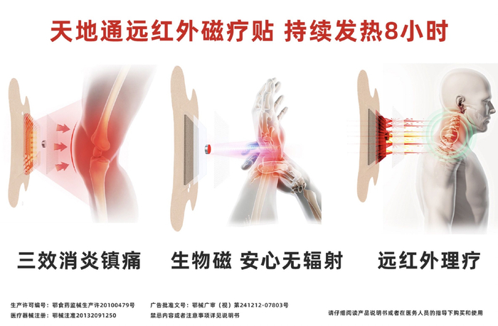 首先,咱得看品牌实力,牌子不行的话产品吹得天花乱坠都没用!身体是自己的,千万别跟风用什么杂牌子,要认准专业靠谱的大牌子!小编所了解的有款产品叫天地通远红外磁疗贴,品牌本身拥有22年的历史,而且还上过央视广告,正规药监备案,有自己的专利证书,整个品牌透着正气凛然!
