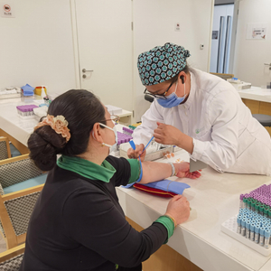 肖俊英护士长为患者抽血