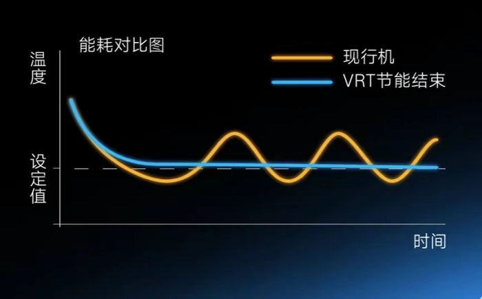 压缩机动力强大,也要防止过量输出。未搭载VRT技术的空调仅可通过冷媒多与少来调节,大金VRT温量混动技术*3还可调节冷媒温度,让空调真正地按需输出,精准拿捏。