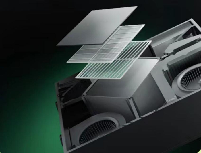 2004年大金从日本引进全热交换技术,将排风中的废热回收,调整新风的温度。夏冬季可减少过高/过低的新风温度对空调能耗造成的影响。让能耗1+1<2。