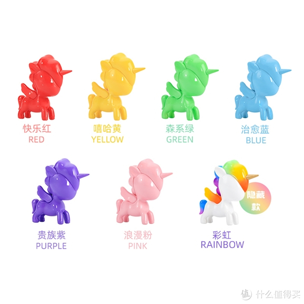 人生,不需要伪装成另一个样子,是敢于打破边界的自由表达。多彩,不是别人眼中的异类,是敢于展现自我的信号。彩虹独角兽从不被定义,它们每一只都是唯一。系列内含6款常规款,1款隐藏款,隐藏款的概率为1:72,手办高约100mm,比普通的款式高40mm,大尺寸把玩更舒适~常规款的6个颜色分别为快乐红、嘻哈黄、森系绿、治愈蓝、贵族紫以及浪漫粉,隐藏款为独特多彩的彩虹色系!每款的颜色纯正浓郁,自带光泽感。含有珍藏的专属身份卡,每款自带专属编号,每一只都是唯一。