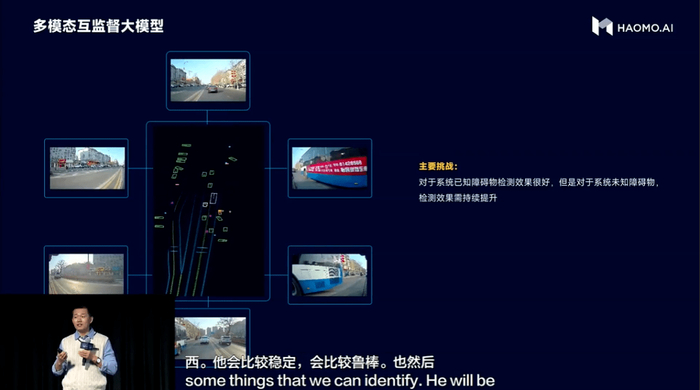 多模态互监督大模型则可以完成通用障碍物的识别。毫末在成功实现车道线和常见障碍物的精准检测后,针对城市多种异形障碍物的稳定检测问题,毫末正在思考和探索更加通用的解决方案。目前,毫末的多模态互监督大模型,引入了激光雷达作为视觉监督信号,直接使用视频数据来推理场景的通用结构表达。该通用结构的检测,可以很好地补充已有的语义障碍物检测,有效提升自动驾驶系统在城市复杂工况下的通过率。