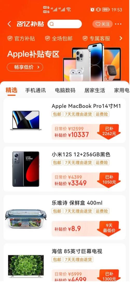 如果对上面的Apple产品心动,推荐来京东百亿补贴入手。值得注意的是,京东百亿补贴产品数量有限,有需要的朋友尽早入手!