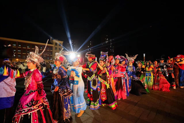 贵州工商职业学院学生着民族服饰参加篝火晚会