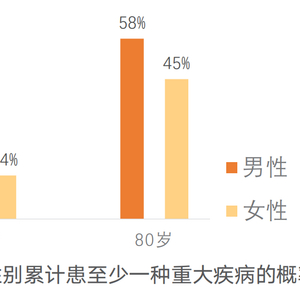 重疾发病率高且逐步年轻化。很多人认为自己身体健康,得重疾的概率很小,缺乏足够的思想准备。但,一个基本事实是:重疾的发病率其实很高,特别是从人的一生来看,很大一部分人,最后都会得重疾,寿命越长,得重疾的概率越趋近 100%,严格意义上的“寿终正寝”其实是极少的。