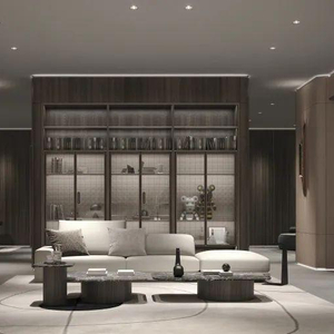 正式、大气的主会客厅,结合轻奢复古风。大面积的黄色、棕色撞色更显高级感,皮革、玻璃、灯光的点缀,奢华气息更加吸引人。