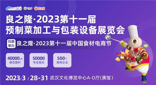 3月28日-30日,良之隆•2023第十一届中国食材电商节将在武汉隆重举行,同期举办良之隆·2023第十一届预制菜加工与包装设备展览会,首次以一城双展的形式,为食材同仁们打造一场闪耀2023年的食材产业盛典。