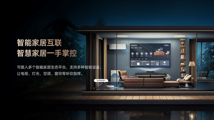 海信激光电视S760K可接入多个智能家居生态平台,与其他智能组件组成完整的智慧家庭解决方案——电视、空调、灯光、窗帘等接入智能生态平台后,可通过设定固定场景,语音进入观影场景,空调自动开启、灯光自动调节亮度、窗帘自动关闭、激光电视缓缓亮起……智能便捷居家生活由此开启。