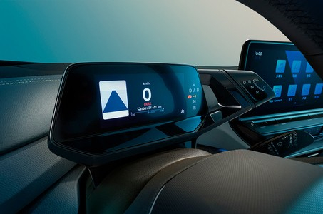 进入车内,ID.4 X简约时尚的设计语言依旧存在。不同于大部分车型,ID.4 X将换挡区域集成到了液晶仪表右侧,既扩大了中控台空间,又增添了不少的设计感。
