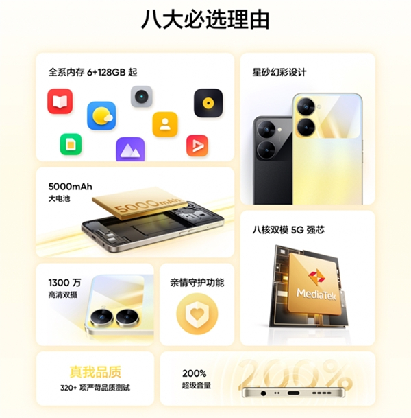此外,给父母购机一定要挑选屏幕大、显示清晰、护眼的产品,不仅使用体验更好,还能呵护双眼。真我V30采用6.52英寸高清高亮护眼屏,还原色彩本真,支持阳光屏,峰值亮度高达600尼特,在阳光下也能轻松看清屏幕;还可开启护眼模式有效过滤蓝光,减缓视力疲劳,保护父母用眼健康。与此同时,真我V30采用1115扬声器,选择不同应用场景即可一键开启超级音量模式,将外放音量提高200%,即使听力不佳的长辈也能正常使用。