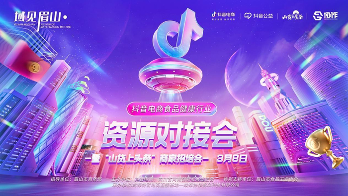 为进一步推进眉山食品健康产业带发展,深度挖掘眉山食品行业的电商潜力,丰富商家线上销售渠道,助力传统企业转型升级,3月8日下午14时,在眉山市商务局指导以及眉山食品工业协会的支持下,由抖音电商、四川省网商创新发展促进会主办,成都协作优品科技有限公司承办的”抖音电商食品健康行业资源对接会·眉山站暨‘山货上头条’商家招培会“在眉山宾馆成功举办。