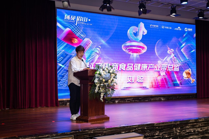 现场分享环节,抖音电商食品健康产业带运营总监刘聪,代表抖音电商官方表达了对眉山产业带商家的展望,同时鼓励商家抓住商城机遇,提效增质,实现跃迁。