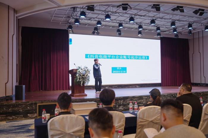 运营培训环节,来自抖音数字学堂的内容运营经理张轶东,通过5个板块的细致讲解,教授企业如何打造爆款短视频以提升销售的运营经验,帮助企业提升短视频内容运营能力。