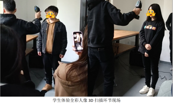 在这堂课的最后,上海乂仑三维设计有限公司的高总在为同学们演示全彩3D扫描仪的同时,也让同学们体验了一把真人手办定制的全彩人像3D扫描环节。在扫描的同时会在电脑上同步生成带贴图的人像三维数据,生成的人像数据在经过设计师优化后就可以进行3D打印,得到精美的真人手办模型。