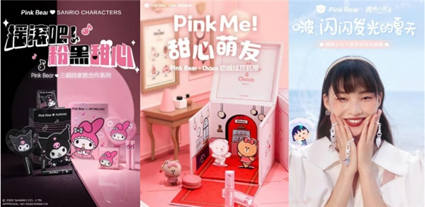 在这一段与少女们牵手前行的治愈旅程中,PinkBear皮可熊推出了PinkBearPinkBear皮可熊与三丽鸥家族合作系列、PinkBear x Choco奶绒绒甜品屋礼盒、樱桃小丸子联名泡泡唇釉,与诸多有爱、温暖的IP们共同为少女们带来美好生活的祝愿。此外,PinkBear皮可熊也推出了许多受到喜爱的经典产品,如粉色牛仔唇泥、会呼吸的唇釉等等,都为少女们打造专属妆容带来了美好上妆体验。