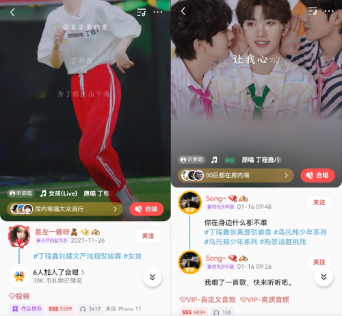 除了新歌《一起跳舞吧》,丁程鑫以往的作品在全民K歌也有着极高的翻唱量,不论是团歌还是《女孩》、《亲亲爱》等作品,都深受K歌友友们的喜爱。K歌网友“是左一酱呀”演绎的《女孩》,完美还原了原曲浪漫活泼的氛围,搭配上她甜美清澈的嗓音,将少年淡淡的表白、浓浓的爱恋铺垫开来,引发了一众友友的共鸣,真不愧是翻唱榜上名列前茅的作品;而K歌网友“Song”演绎的《亲亲爱》也令人拍手叫绝,轻快的节拍搭配上动人的歌喉,小编仿佛目睹了一场跨越时光的告白,她独特的慵懒嗓音在全民K歌“VIP-自定义音效”的增色下更富有感染力。