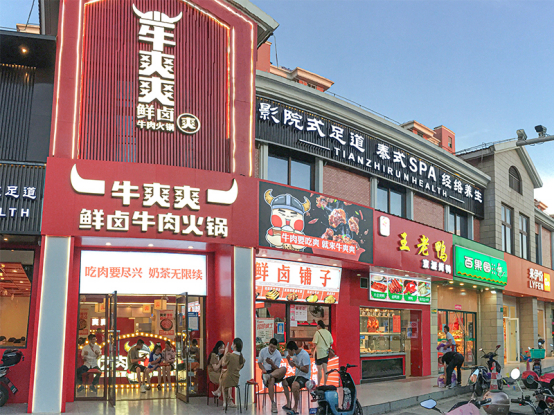 其次,三四线火锅市场以夫妻老婆店为主,连锁品牌很少且规模有限,具备深厚供应链基础且懂得品牌化运作的初创公司拥有较大成长机会。「牛爽爽」不在商场里与有多年品牌声誉的龙头展开较量,而是选择租金和人力成本较核心商圈便宜很多的偏僻社区开店,希望满足上班族在家门口就能吃到火锅的需求。