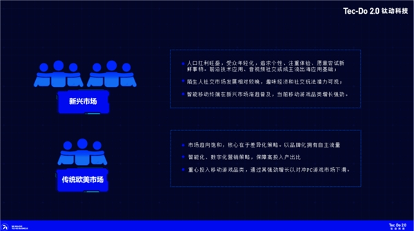 在新兴市场,人口红利旺盛,受众年轻化,更加追求个性、注重体验、愿意尝试新鲜事物。随着智能移动终端渐趋普及,移动游戏品类增长强劲,前沿技术应用、音视频社交或成主流出海应用基础。相较于欧美市场,新兴市场的陌生人社交发展相对较晚,趣味经济和社交玩法潜力可观。