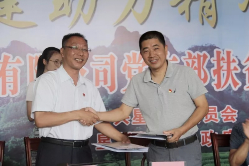 江元勋(左)在“贫困帮扶计划”项目的签约现场