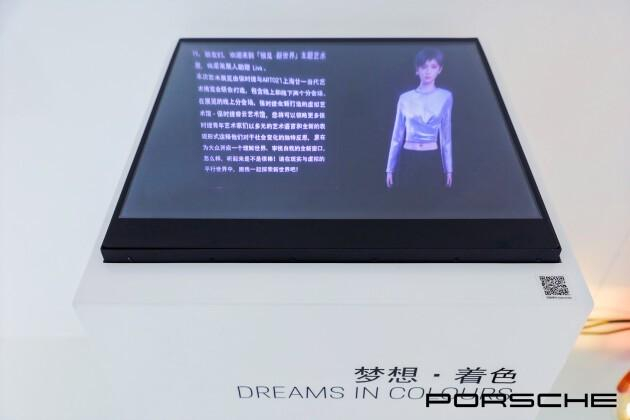 该艺术展由艺术博览会联合创始人与其虚拟人策展助理时灵希(Liva)共同策划,包含线上、线下两个分会场。线上分会场“保时捷睿云艺术馆”作为全球首个汽车品牌专属的虚拟艺术馆,由品牌畅想、主题展览、用户共创三大展区组成。其中,用户共创展区以“梦想·着色”为主题,观展者可以借助AI自动生成技术创造属于自己的作品,并展示在线上和线下分会场。像航利用无介质全息技术展示交互终端,助力虚拟人及客户共创艺术作品的线下呈现。