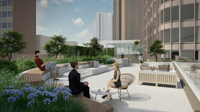 基于混合办公的趋势发展,鸿寿坊将引入瑞安办公创新打造的多个灵活多元办公产品和服务,如WORKX SOCIAL商务空间以及提供分布式办公空间解决方案的WORKX NOW。超大面积的屋顶花园,地下停车库特别设置的“绿色骑点”,倡导低碳可持续办公方式的同时,为企业租户提供丰富的商务配套和选择。
