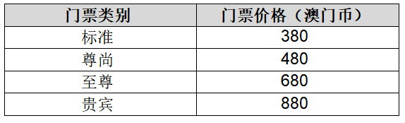 售票处:永利皇宫南接待处礼宾部, 24 小时查询热线 (853) 8889 9070
