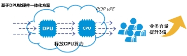 SD-WAN方案中的核心部件vPE,以虚拟机的形式进行部署,通常使用CPU资源对数据面进行软件处理。虽然这种软件化的处理方式为云专线业务带来了灵活部署、便捷开通、自助弹性服务等优势,但也同时存在着CPU计算资源负荷过高、转发能力受限、业务时延加大等问题。