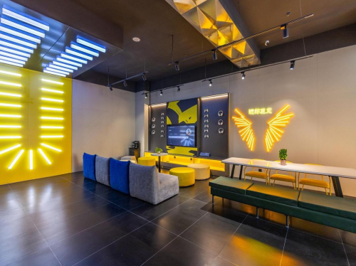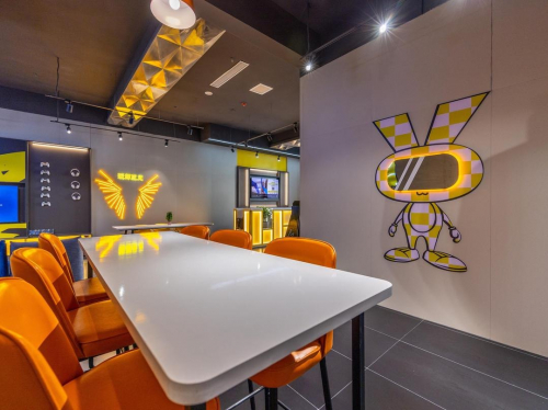 随处可见经典黄黑“赛博”配色,从公区到客房,从墙面到VI,都极具个性化和潮流性。除了视觉效果亮眼之外,赛博朋克另一个关键词是科技,作为科幻题材的衍生,赛博朋克是未来生活的具象展现,而IU则将黑科技与酒店的产品设计和服务设计进行了完美融合。此时,高科技与高颜值达到完美统一,为游戏爱好者打造了一个从视觉到触觉的科幻体验。