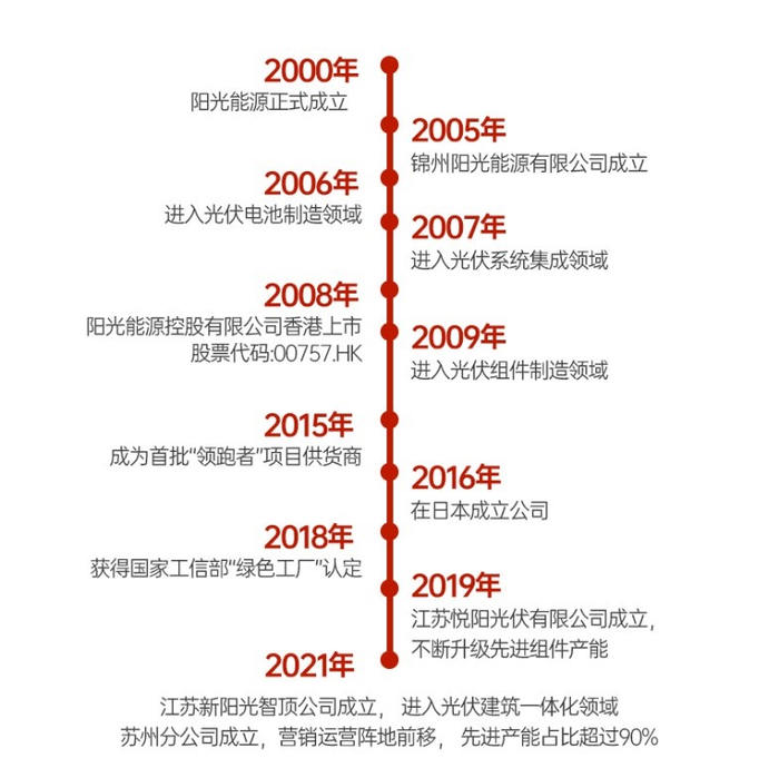 成立于2000年的阳光能源与新世纪同岁、与新能源时代比肩,一个个携手筑梦的阳光人、一步步稳扎稳打的骄人履历、一座座金光闪闪的奖杯共同铸就了如今这家企业。