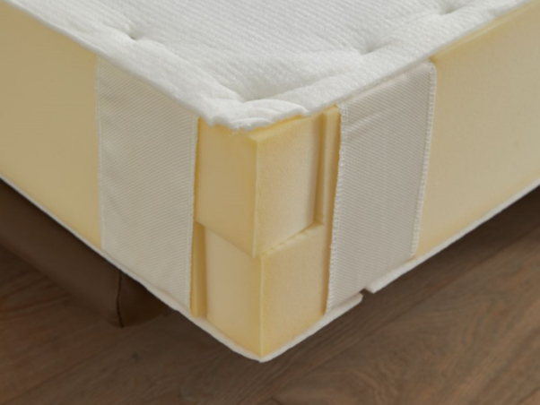 栖作的全新围边工艺,则是从中国传统建筑中汲取灵感,护边海绵采用榫卯结构拼接,外用加宽布带和扣钉固定,卡位平整贴合,以确保睡眠者能体验到良好的边缘支撑感。