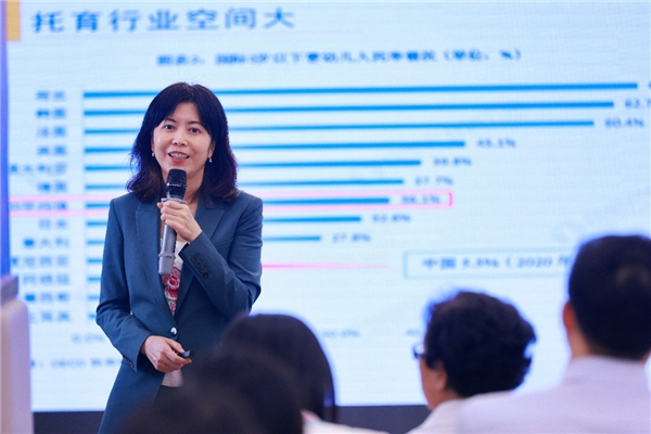 集团副总裁高寿岩结合大量生动的教育案例,详细介绍了每芽托育的课程设计、云平台系统、五大服务支持体系以及完整、易操作的配套产品。她指出,每芽托育课程具有回应性招呼、体验式成长、医养相结合、浸润式环境、个性化教养等五大优势。