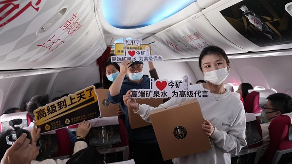 今日,今矿召开空中发布会,来自食品饮料行业的企业家、智业专家以及业内媒体共同搭乘专机,在千米高空之上共同见证了今矿的上市发布。在“水头大战”一触即燃的饮品推新季,今矿空中发布会引发行业关注。上市即起飞,今矿与众不同的上市仪式很高级。