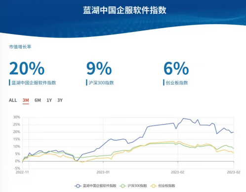 如今随着企业发展到一定阶段,规模逐渐扩大,人群也在逐步增长,企业管理的难题已经离不开企服软件的帮助。蓝湖资本团队表示:“蓝湖资本重仓中国数字化产业创新升级,企服软件是我们重点投资的赛道之一。为了长期追踪行业发展趋势,我们采集了近40家中国标杆性的企服软件上市公司的市值数据,形成「蓝湖中国企服软件指数」,并定期分享基于该指数及行业发展的数据分析与思考,期望以此陪伴并见证中国企服软件赛道的成长之路。”由此也显示了蓝湖资本对于客户需求的把握以及对软件行业独有业务模式成长节奏的跟进和耐心。